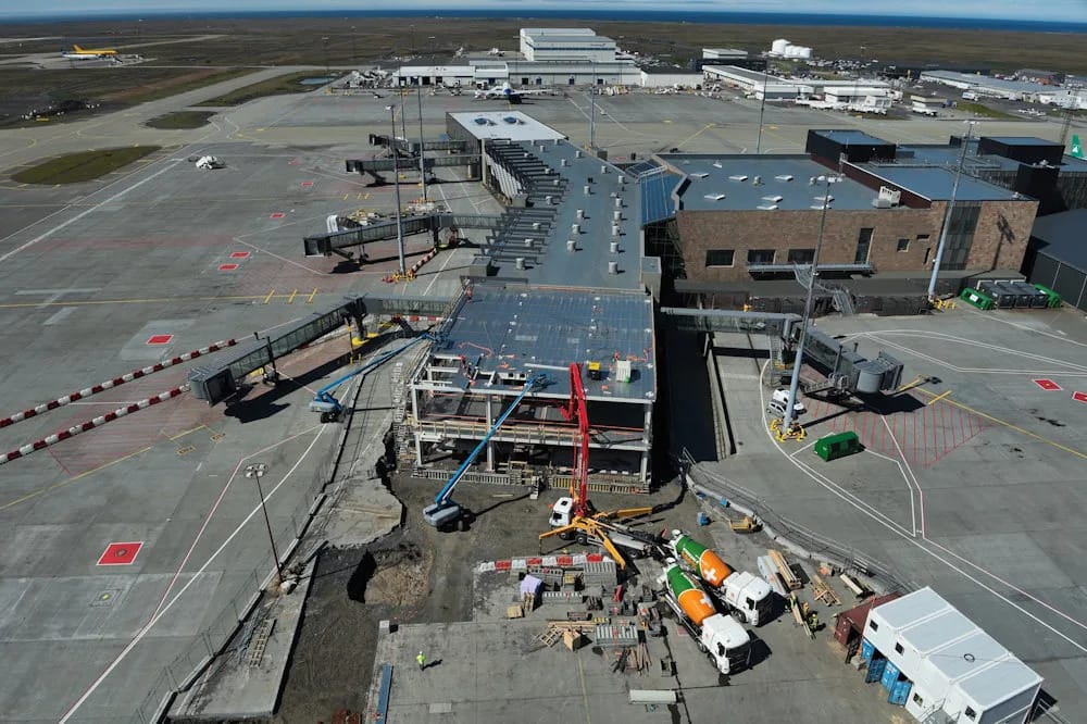 This July, not only is the airport experiencing peak tourist traffic, but it is also undergoing significant construction. The largest expansion in the airport's history, Austurálma, is well underway, along with the extension of the South Building, the terminal housing C gates.