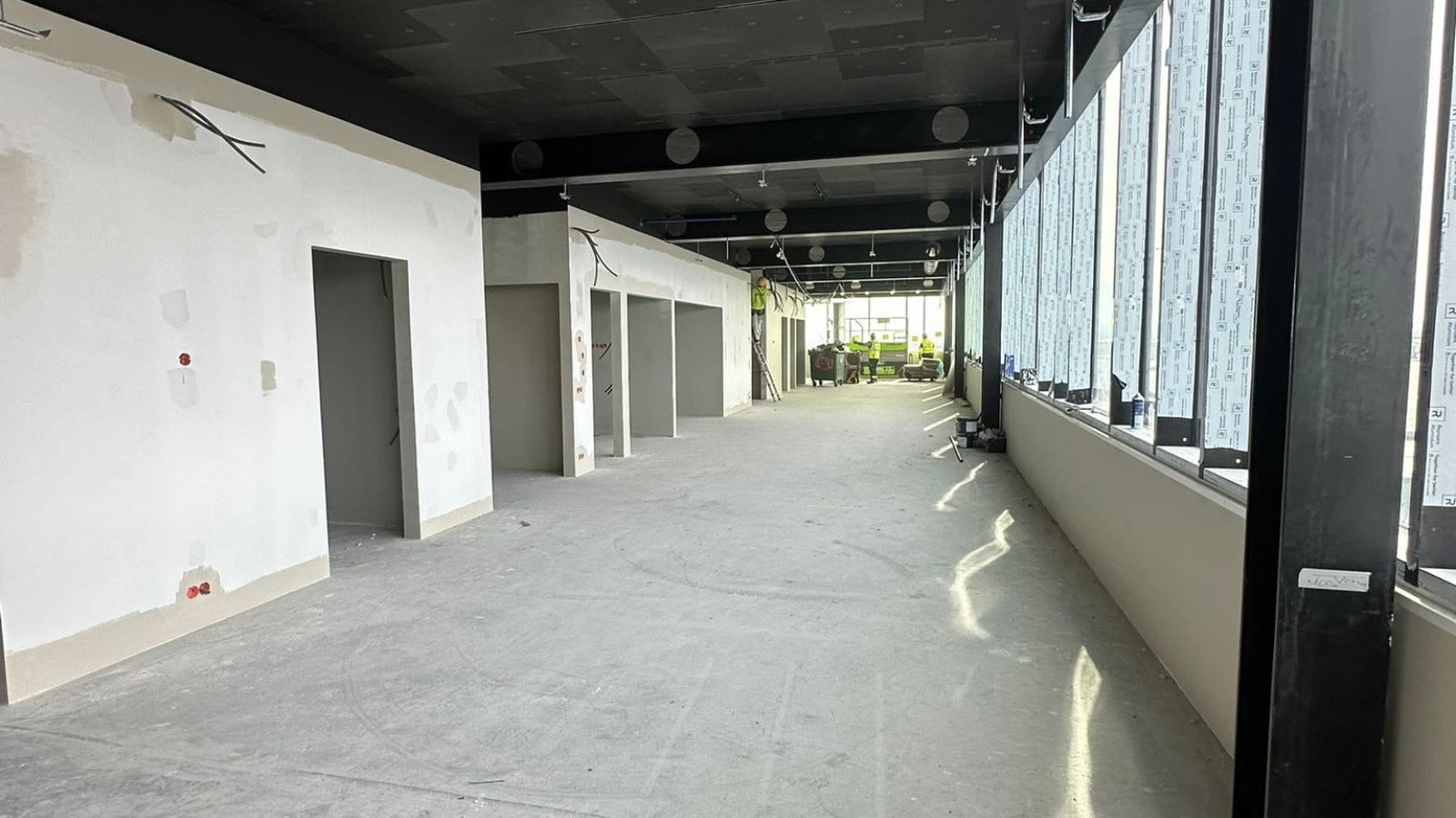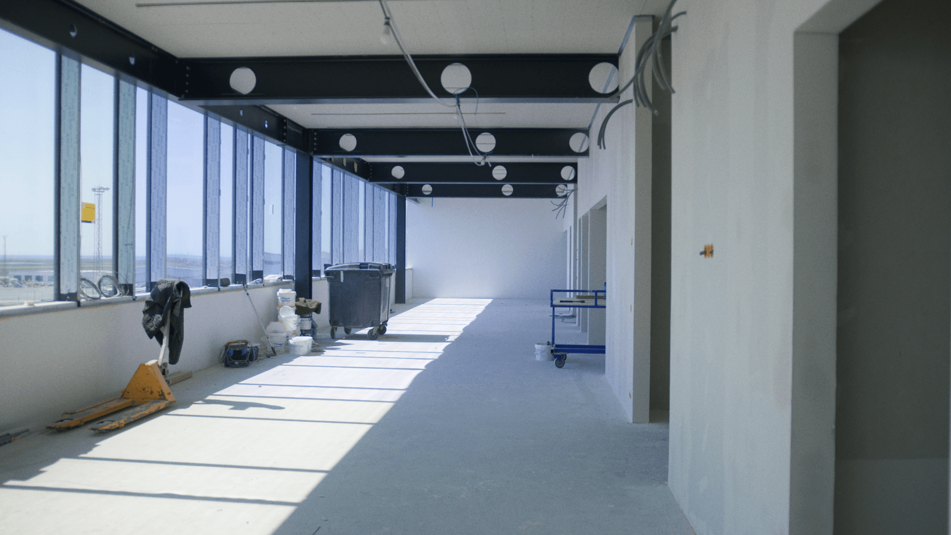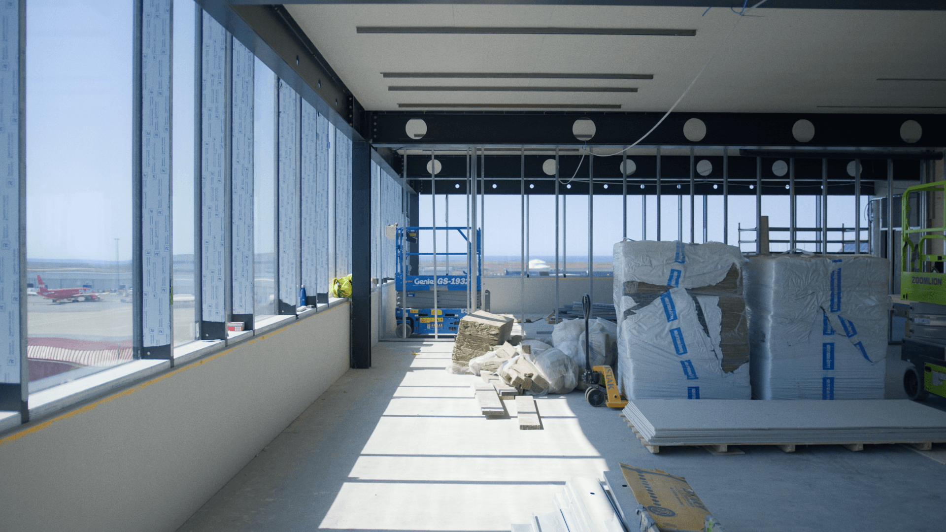 This is a 1,450 square meter office space, which has been connected to offices in the North Building of the airport terminal by a walkway. In the attached video, you can see what the floor looks like now during construction.