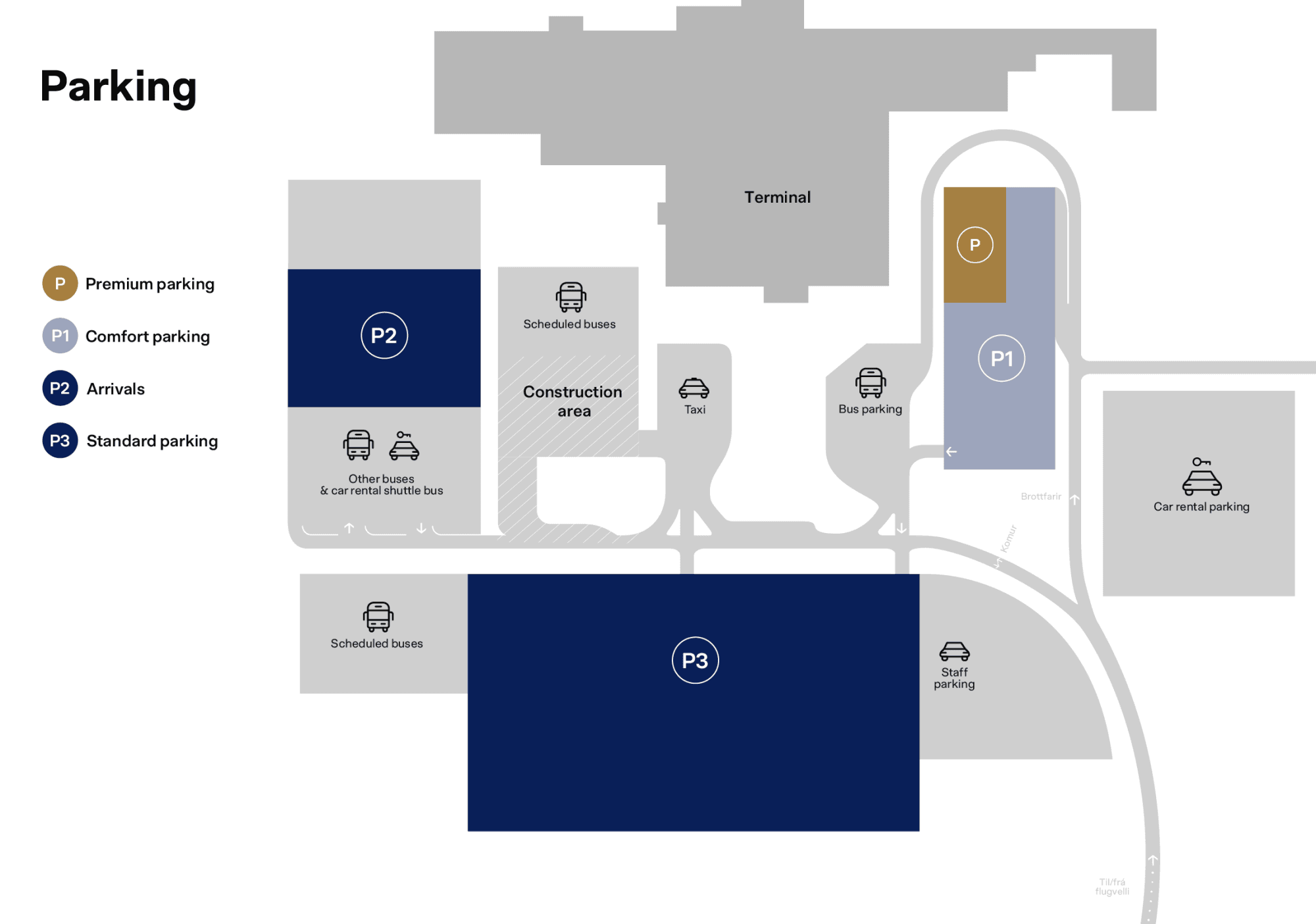 Park your car in the designated Premium Parking area located inside the P1 parking lot, closest to the terminal (view map). Return your car keys to the keybox located at the entrance to the departures hall (see map). You will receive the PIN code to access the keybox and return your keys via email. Click here to see the location of the keybox at departures.